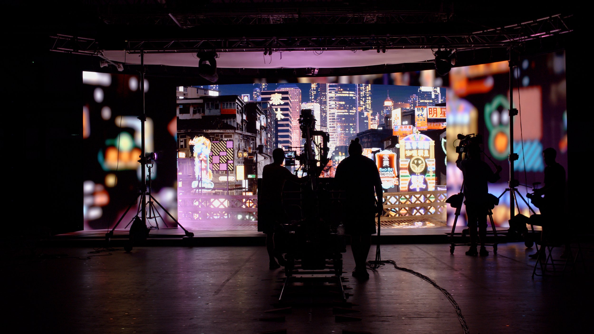 Produced and Engineered by Bild Studios, dandelion + burdock created a Hong Kong city skyline scene for Jax to perform against. Led by Motion Director Dickon Knowles, the content team created this vibrant night time scene which depicts a neon lit street with skyscrapers in the background and atmospheric fog in the foreground.